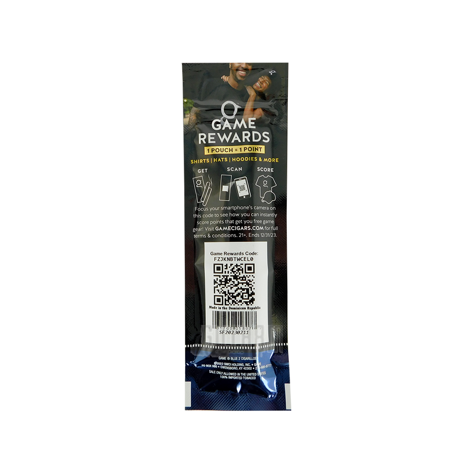 Experience nostalgia with Game Blue Cigarillos, featuring a smooth blend of natural vanilla and premium tobacco. The cigars are crafted with a homogenized binder and wrapped in a natural leaf for enhanced flavor and a consistent burn. The wrapper also provides a smooth texture, making these mild, sweet cigars ideal for a relaxed smoke, especially on a lazy summer afternoon. Machine-made in the USA, these cigars come in packs of two, sealed in airtight pouches to maintain freshness and flavor.
